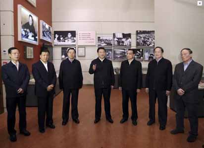 2012年11月29日,中共中央總書記、中央軍委主席習近平和中央政治局常委李克強、張德江、俞正聲、劉云山、王岐山、張高麗等來到國家博物館,參觀《復興之路》展覽。新華社記者 蘭紅光 攝